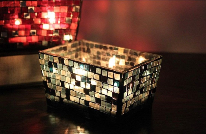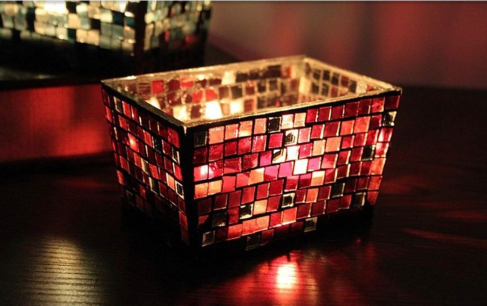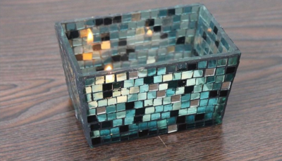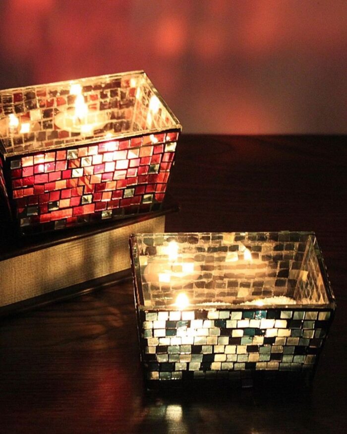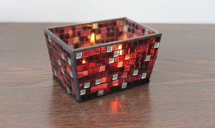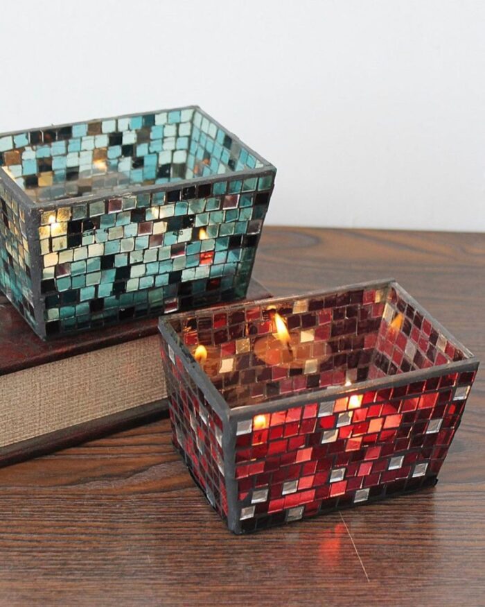 الوصف: حامل شمع مستطيل من الزجاج الملون