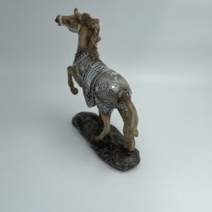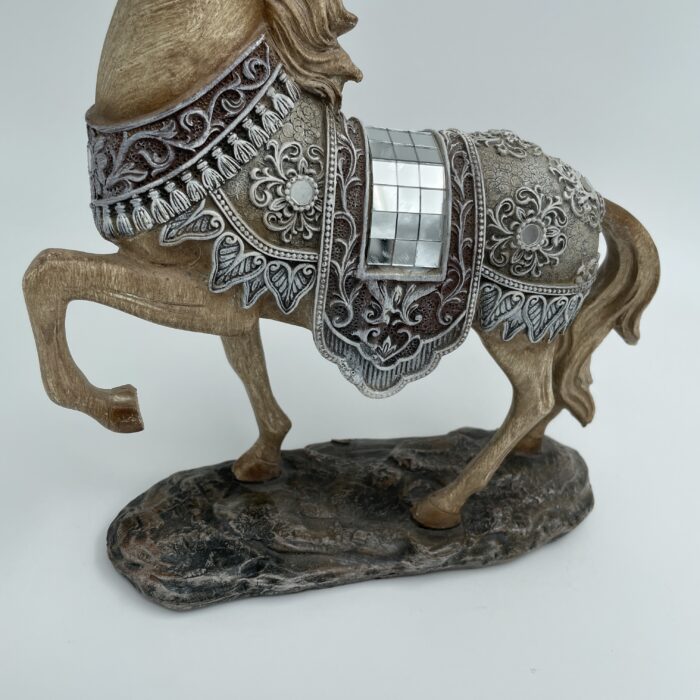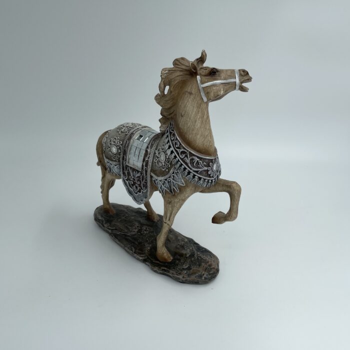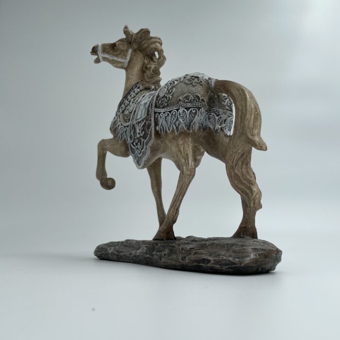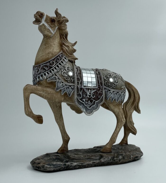 الوصف: مجسم خيل بني مرصع بقليل من الزجاج